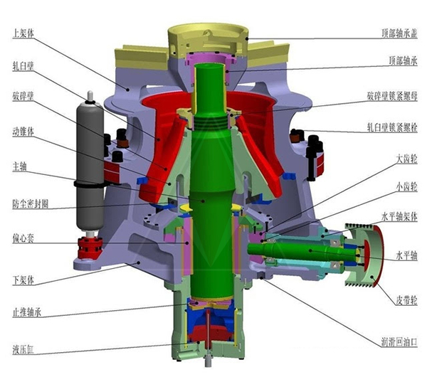 由于單缸圓錐破碎機(jī)在礦機(jī)市場上的持續(xù)性推廣,單缸圓錐破的使用量節(jié)節(jié)攀升,大家也有必要了解更多單缸圓錐破的知識,其主要組成部分為: